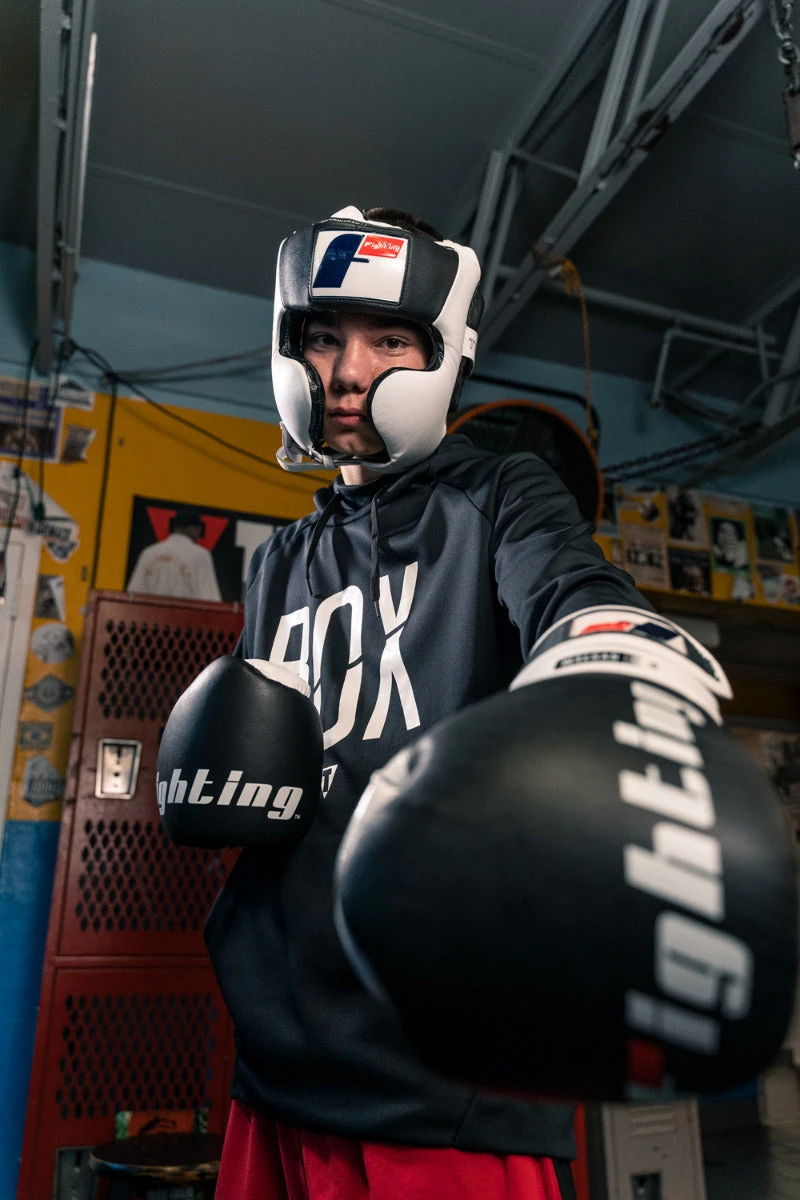 Fighting introduces the newest innovation in training headgear with exclusive Tri-Tech® design and incorporation. A trio of precision placed inner foams – K-329 Sponge Comfort Foam, BL05S High Density Impact Absorbing Foam and S-2 Latex Low Density Protection Foam – creates the most comfortable, awe-inspiring and high coverage designs in the world. The unsurpassed comfort, coverage and high tech fit are unparalleled. Precisely padded cheeks, forehead, ear pads and rear pad offer the ideal headgear. Full adjustable chin strap with elastic and hook-and-loop top and rear straps to custom fit to your head like a glove. A soft, supple and durable smooth inside liner allows athletes to wipe clean between uses. Constructed from select hides of full grain leather for the best training headgear you will own.